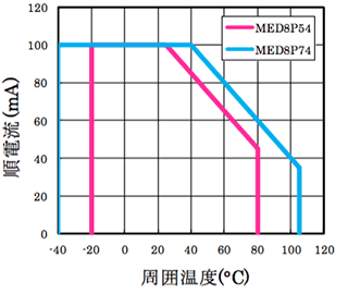 今回、さらに多重量子井戸層の成膜条件に高温時の光出力低下と層内の発熱を抑制できる最適点があることを見出し、この最適点に成膜条件管理をコントロールすることで動作保証温度上限を従来の80℃から点光源LEDでは業界で初めて105℃に引き上げ、使用上充分な電流での高温動作を可能としました。