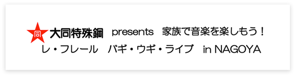 大同特殊鋼株式会社(社長:嶋尾 正)は、2016年8月19日に創業100年を迎えます。当社は、1916年の創業以来一貫して、特殊鋼を通じて世界の発展に貢献できるよう努めてまいりました。この節目となる年を迎えることができたのも、皆様のおかげと感謝しております。このたび創業100周年を記念し、株式会社CBCテレビ主催のファミリー向け音楽プログラム「家族で音楽を楽しもう! レ・フレール バギ・ウギ・ライブ in NAGOYA」に単独協賛します。