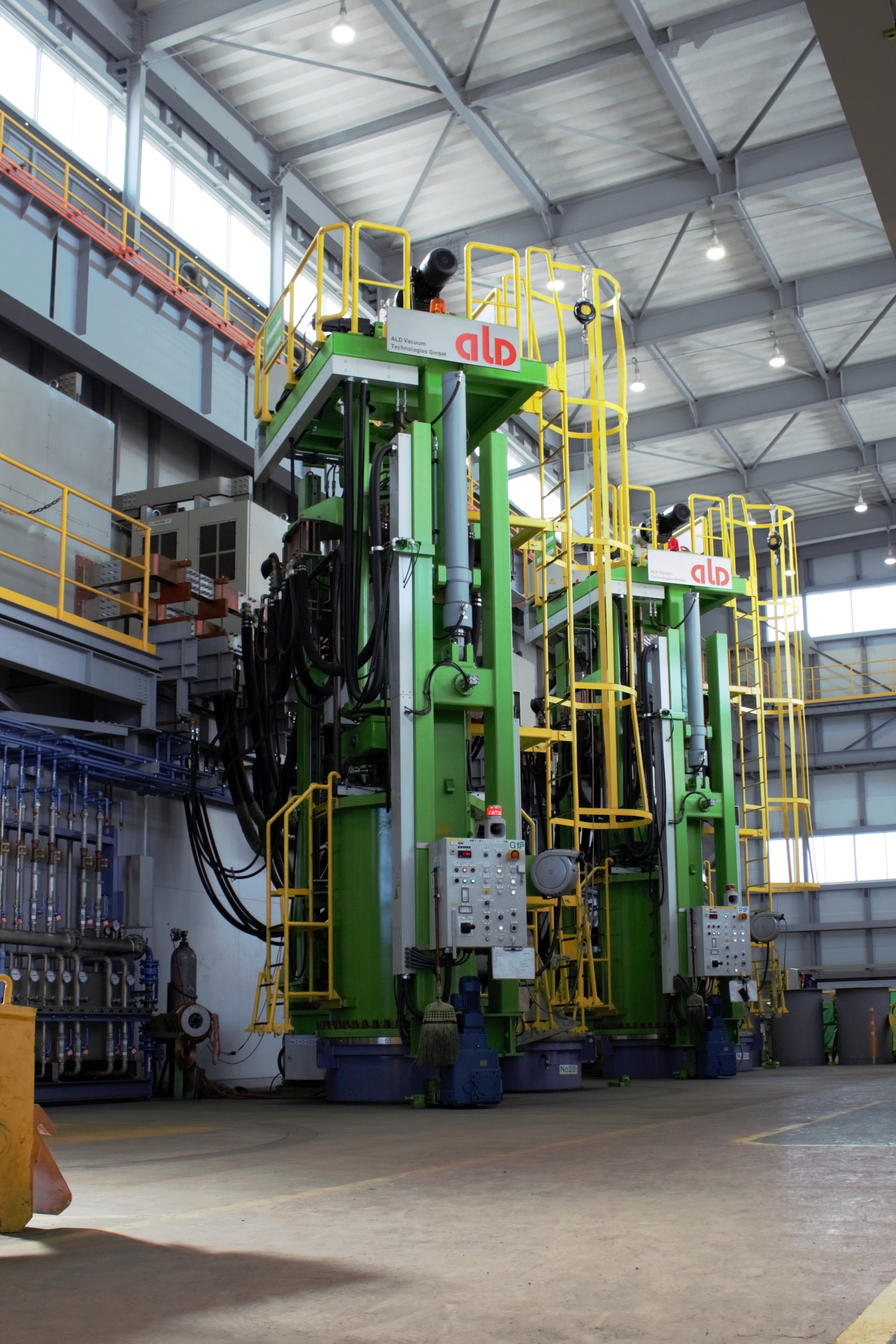 誘導加熱を利用した電気炉で、ニッケル基合金をはじめとする高純度金属や高級合金の溶製に用いられる溶解設備。上述の25トンは1回の溶解量を指し、設備の大きさの規模を表す。