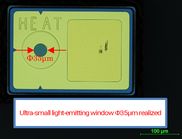 - A small spot diameter of φ35μm is achieved with an ultra-small light emitting window (Fig. 3, 5).