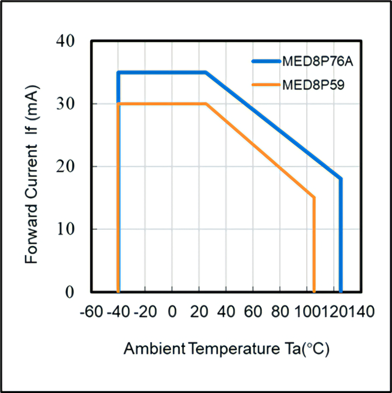 To meet these needs, we have developed the MED8P76A infrared point source LED, which has an ultra-small light-emitting window diameter of φ35μm and can operate in high-temperature environments up to 125℃.