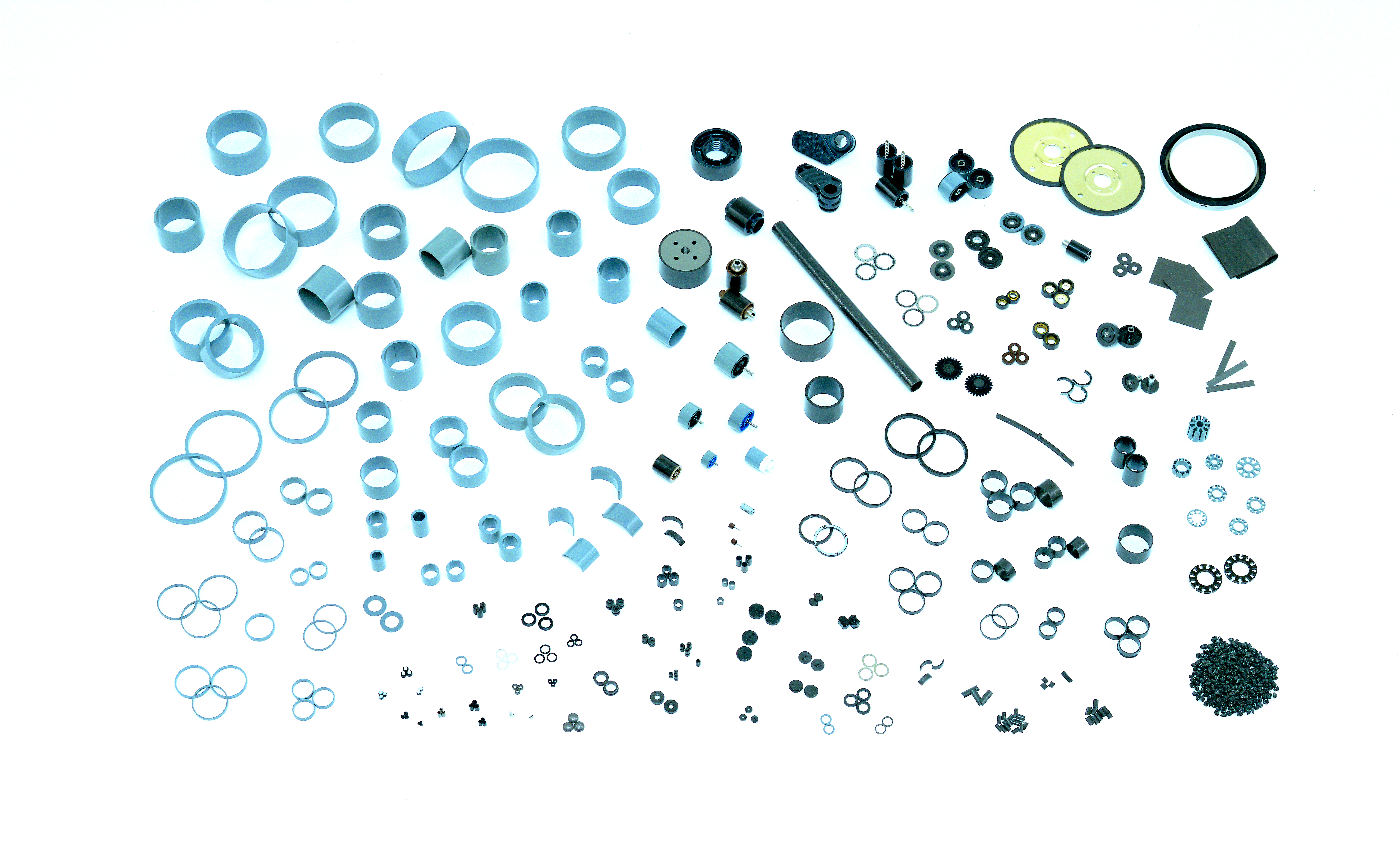 佐川「ネオジム系の焼結磁石は、機械加工や研磨をして出荷しているのですが、 私は焼結したらそのまま使えるようにする『プレス・レス・プロセス』という手法に取り組んでいます。 自動車などに使う製品に近い形でつくる鉄の焼結部品と違い、 ネオジム・鉄・ボロンの焼結磁石は例外的にブロックをつくって切断しているので、 切りくずもたくさん出て回収するのも大変なんです。 プレス・レス・プロセスはSDGs(持続可能な開発目標)の観点からも正しい方法だと思っています。 ネオジム系の磁石は、私たちが発明した焼結磁石と、 米国のジョン・クロート氏が中心となって発明した樹脂ボンド磁石と熱間加工磁石の3種類があります。 大同特殊鋼は、ネオジム系では樹脂ボンド磁石と熱間加工磁石を先行して量産化したのちに、焼結磁石のプレス・レス・プロセスを採用してくれました。それを発展させた新工法についても、今後提案していきます」