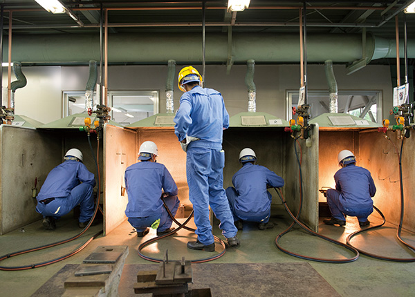 社会を支える人材を育て、仕事のノウハウや技術を受け継ぐことは、企業が果たすべき重要な使命です。こうした考えに基づいて大同特殊鋼では、次世代を担う人材の育成に力を注いでいます。その中でも技術者教育の第一歩となるのが、高等学校卒業者に実践的な教育を行う「技術学園」。ここでは約10ヵ月のカリキュラムで基礎的な技能を身につけるとともに、安全や品質を守る意識を高め、ものづくりに対する使命感を養います。