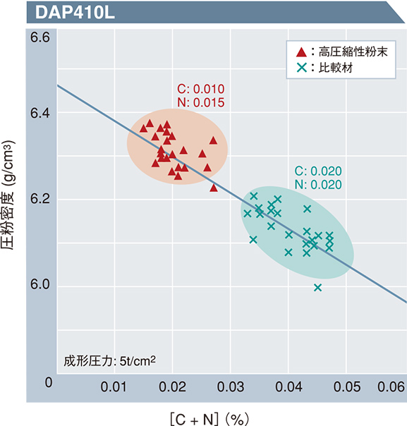 圧粉成形体の強度が得られるため、圧粉成形一焼結プロセス用にも適しています