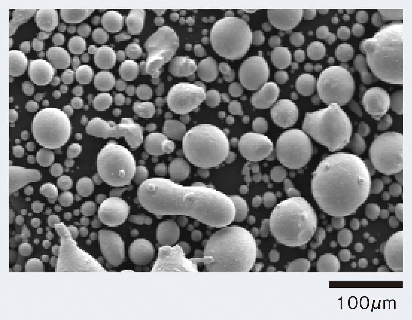 - 球形状の粉末です。充填性に優れています。