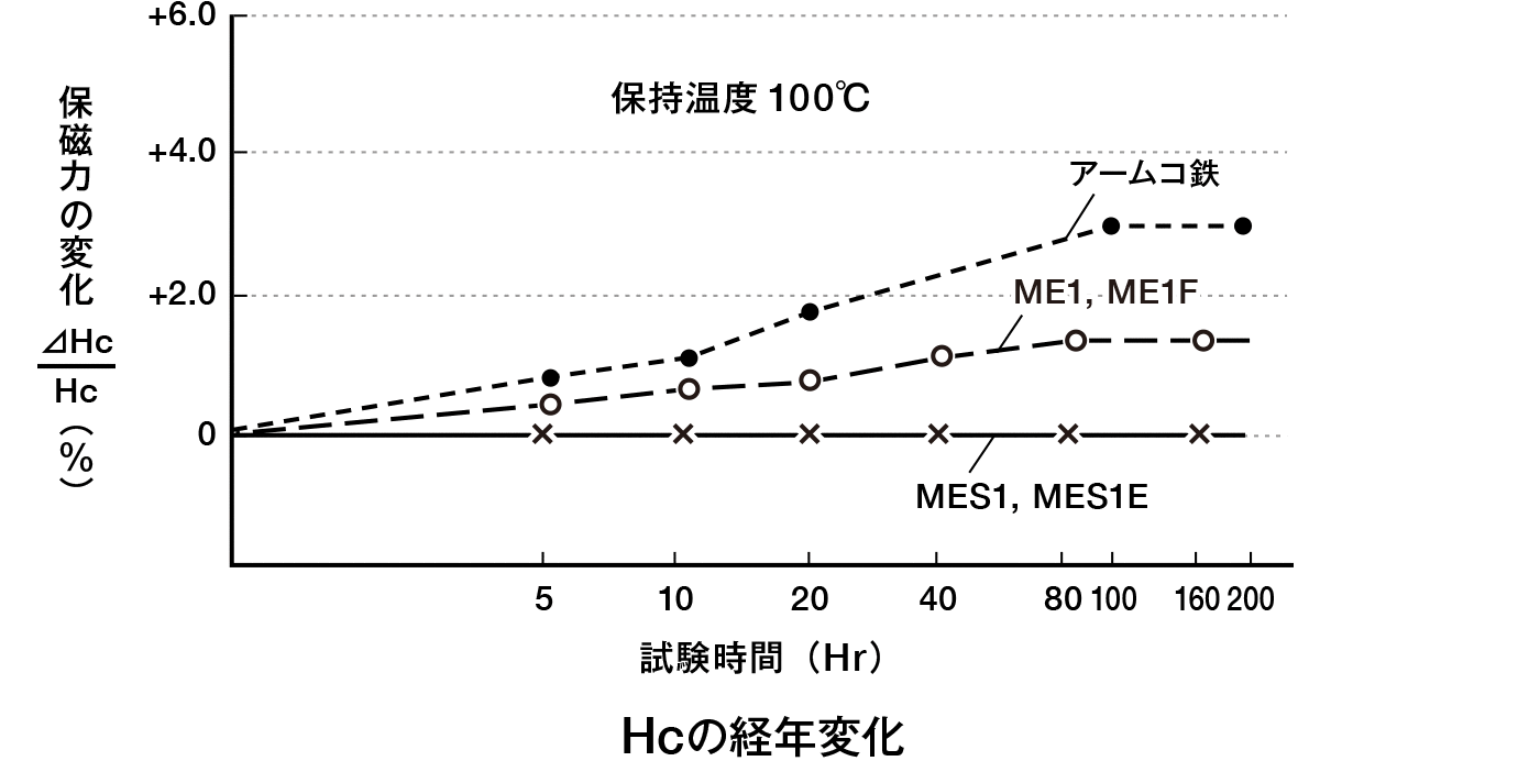 | 記号 | 磁束密度B(T) | 保磁力 Hc(A/m) |