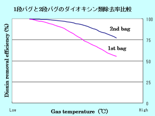 2段バグ式集じんシステムは新設炉のダイオキシン排出基準(0.5ng/m3-TEQ)に適合できます。