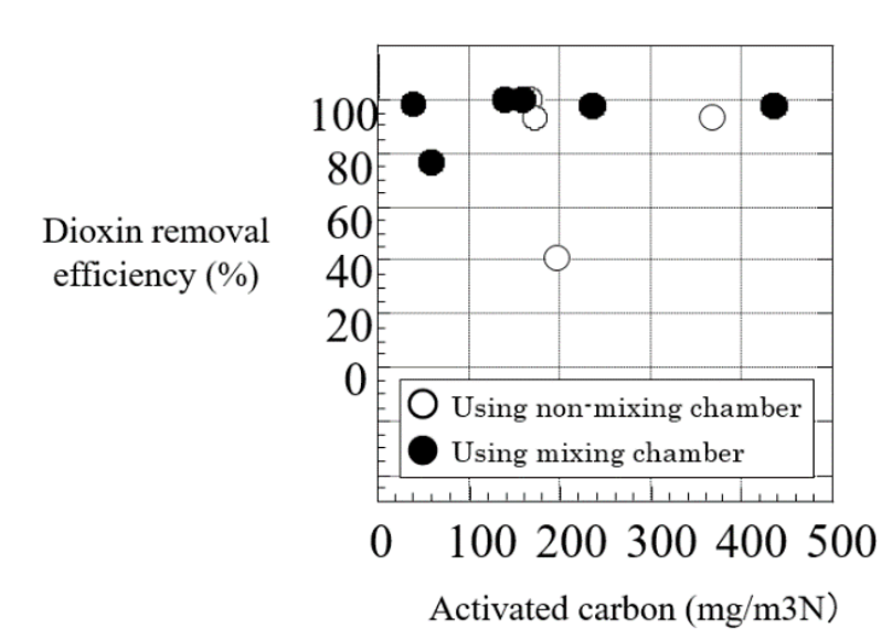 活性炭吹き込み装置によるダイオキシン類除去効果