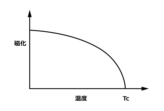 その磁化特性は、Jの値が非常に大きな値となること、ある一定の磁界H以上では、飽和特性を示すことである。この強磁性を示すのは、ある一定の温度以下で、その温度をキュリー温度という。このキュリー温度以上では、強磁性体も常磁性体として動作する。この現象は、強誘電体でも生ずる。