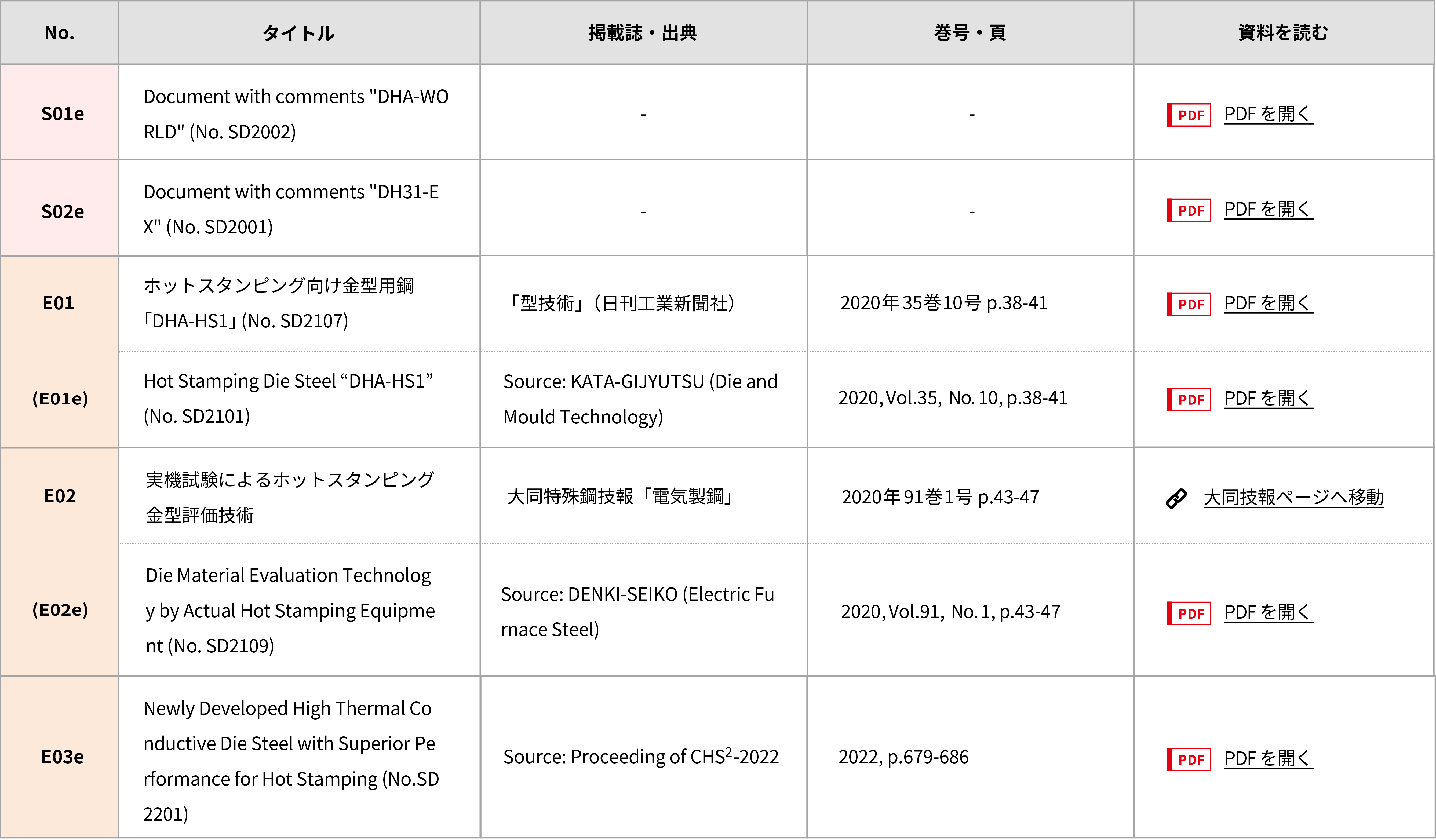 | E02 | 実機試験によるホットスタンピング金型評価技術 | 大同特殊鋼技報「電気製鋼」 | 2020年 91巻 1号 p.43-47 | 大同技報ページへ移動 |