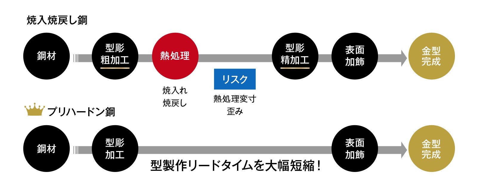 熱処理による寸法変化や歪みの心配もなく、型製作リードタイムを大幅に短縮できます。
