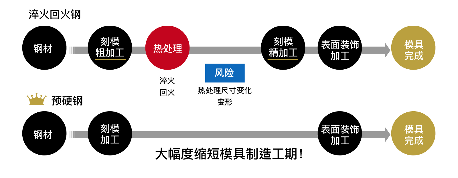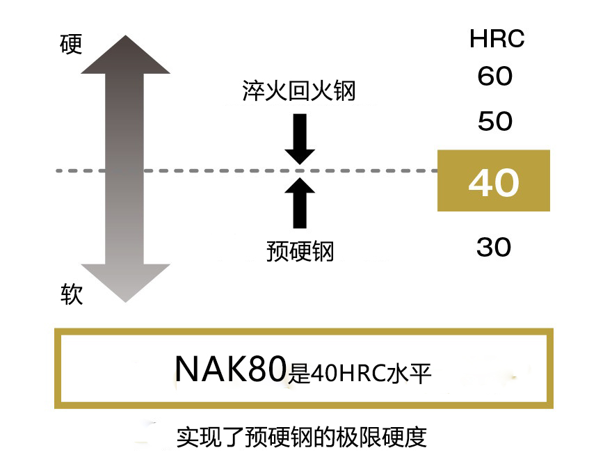 NAK80钢、在焊接后通过时效处理、可以得到均匀的硬度、因此不用担心焊接痕迹和蚀纹不匀、再行研磨后、镜面也可得到复苏。