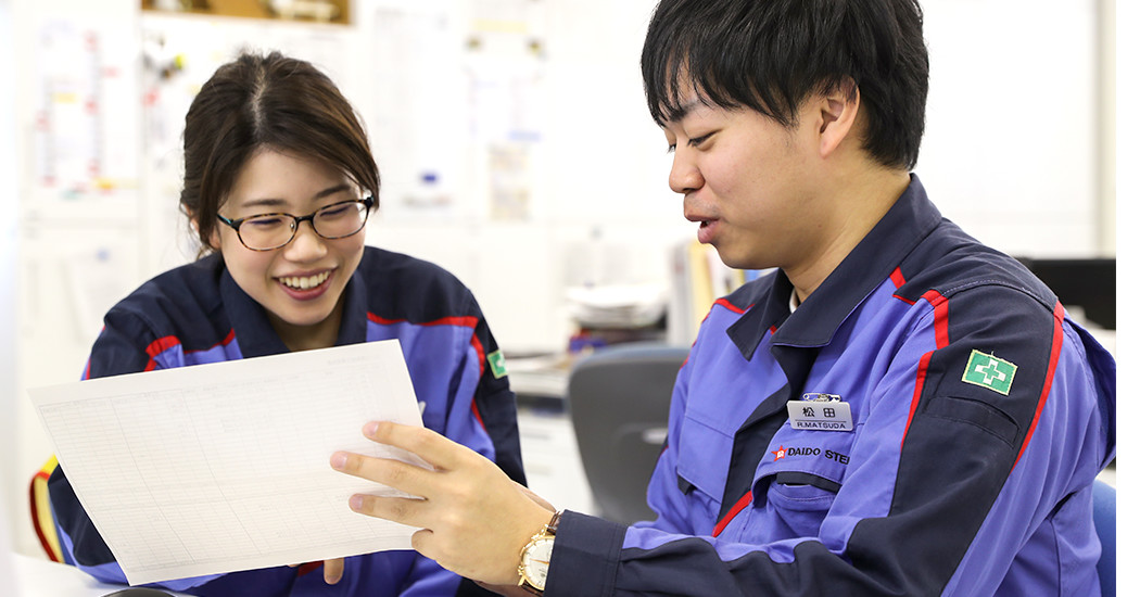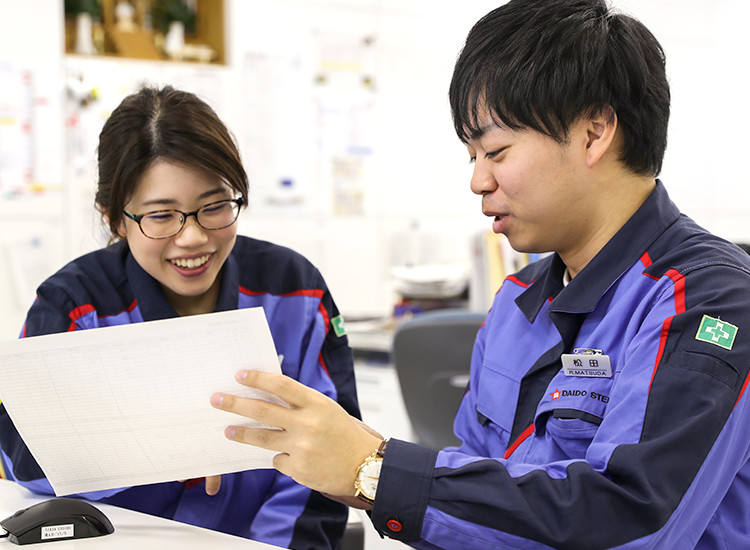 大学で学んだ会計の知識をいかしたいと思い、就職先はメーカーの経理部門を希望していました。メーカーの中でも幅広い産業に関わっている企業で活躍したいとも思っていました。大同特殊鋼は自動車のエンジンといった身近な部品から、航空機など規格の厳しい部品まで幅広い分野で貢献しているところに魅力を感じました。また大同特殊鋼ならではの働き方も入社の決め手になりました。新入社員一人に対し、一人の先輩がサポートしてくれる「ブラザー制度」や若手でも自分の成長に繋がるような仕事を任せてくれる環境など、ここなら安心して働けて、人間的にも大きく成長できそうだと思いました。実際、ブラザーはもちろん、頼りがいがある先輩が多く、仕事はひとりで抱え込まず、みんなで協力してやり切ろうとするチーム力がこの会社の強みだと感じています。