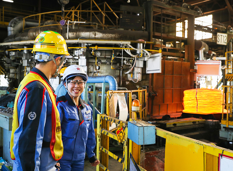 線材製品固溶化熱処理工程の能力向上を担当しています。能力向上では熱処理速度を速くすることで処理量を高めることを狙いますが、処理時間が短くなれば品質が低下してしまうこともあります。そこで私は、過去のデータをもとに「速くたくさん処理するにはどの温度が適切なのか」と温度条件を見直しながら、品質を損なわないように処理できる方法を探っています。材料や辿ってきた工程の違いによって、熱処理の方法が異なるのでしっかり下調べすることが大切ですが、その中でも難しいと感じるのは精度の高い試験計画を立てることです。能力向上の最適化を図るための試験は、現場で実際に製造が行われている設備を使います。現場は製造スケジュールがびっしりと詰まっているので、何度も試験を繰り返すことができません。現場の負担を減らすためにも、1回の試験でどれだけの結果が導けるのか綿密に計画することが求められます。さらに、忙しい中で試験のために時間を割いてくださる現場の方々には常に感謝の気持ちを忘れないことも大切です。現場と良好な人間関係を築いて、これからもスムーズに試験が行えるようにしていきたいです。