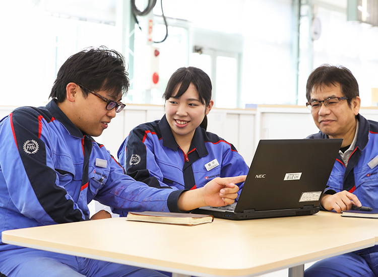 入社して半年ほど経った頃、ある製造の改善を任されました。プラス何tという定められた目標値を達成するためには処理量を増やさなければなりません。ところが、私は自分が行った改善が製品の品質に影響を与えることにプレッシャーを感じてしまい、正しい判断できなくなってしまいました。限られた時間の中で成果を出すためには、より大きな効果が出る方法から検討していくなど、改善法を取捨選択する必要があります。しかし私はその判断ができず、とりあえず全部やってみようと手当たり次第に着手したことで時間がかかり、計画に遅れが生じてしまいました。また、知識や経験不足によって、一つひとつの方法をイチから検討しなければならなかったことも遅延の大きな原因でした。この時は、先輩方がフォローしてくださったおかげで納期に間に合わせることができましたが、先輩には「助けてほしい時は早めに相談して」と言われました。この経験で、仕事はまわりを巻き込みながら取り組むことも必要だと学びました。自分だけではできなくても、まわりの協力を得られればできることは増えます。自分の限界を、仕事の限界にしないように努めていきたいです。