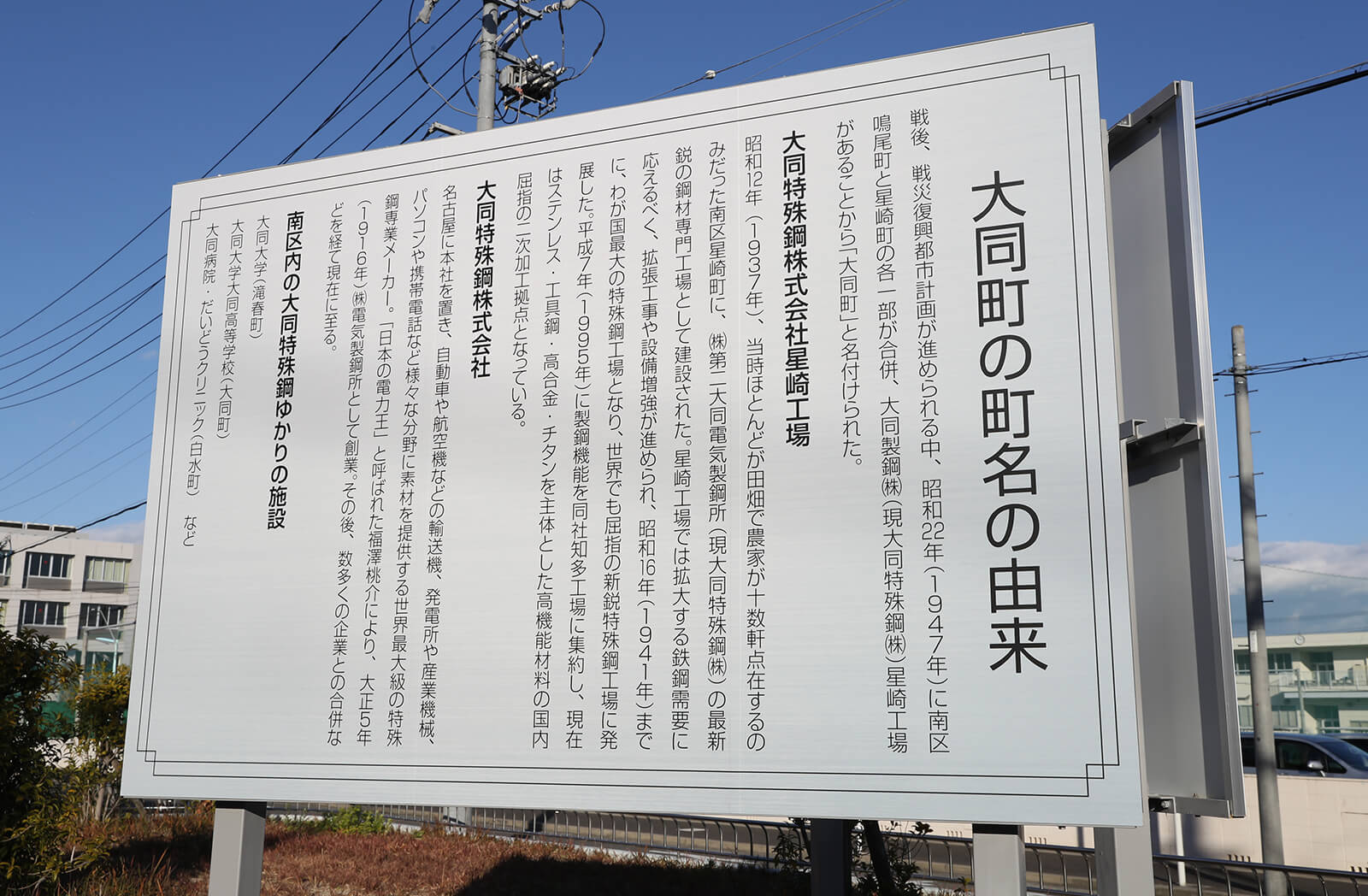 名古屋市南区に1937年に開設された星崎工場。ここではステンレス鋼、工具鋼、チタン・ターゲット材などの高機能材料を生産しています。敷地内には研究開発の拠点・技術開発研究所もあり、特殊鋼をベースにした高い技術力を背景に新製品・新事業の拡大および既存事業の基盤強化に向けた研究活動を行っています。