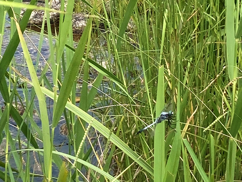 ホタル園と食堂の間にある広場の小川でも、水色のトンボを見かけました。