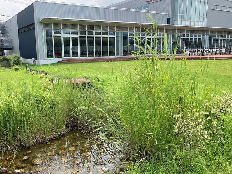 街中にある工場ですが、いろいろな種類のトンボが見られるということは、周りの地域も含めてトンボの生息環境を維持できている証拠と言えるのかもしれません。