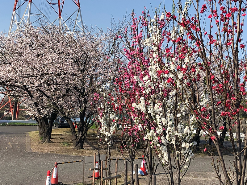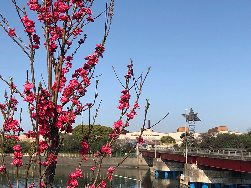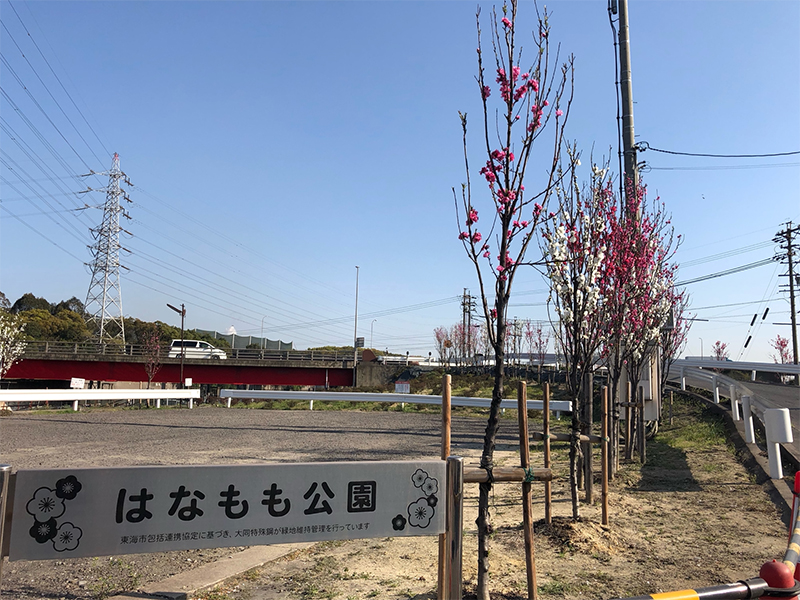 東海市との包括連携協定に基づき、知多工場で管理しているはなもも公園のハナモモが見ごろを迎えています。